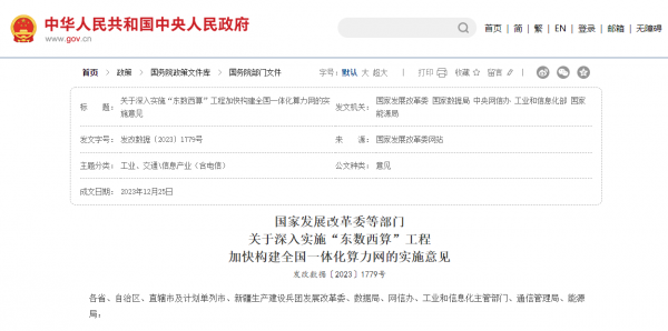 国家发改委关于深入实施“东数西算”工程 加快构建全国一体化算力网的实施意见