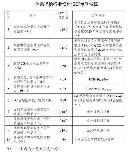 到2025年,信息通信行业绿色低碳发展管理机制基本完善,节能减排取得重点突破,行业整体资源利用效率明显提升,助力经济社会绿色转型能力明显增强,单位信息流量综合能耗比“十三五”期末下降20%,单位电信业务总量综合能耗比“十三五”期末下降15%,遴选推广30个信息通信行业赋能全社会降碳的典型应用场景。
